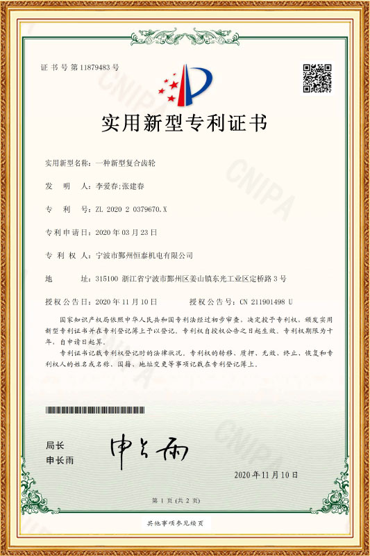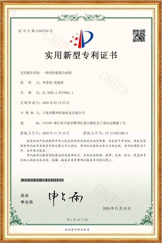 HENTACH har mer enn 10 ingeniører og har etablert vårt eget FoU-senter. En av våre oppfinnelser er giret i nylonstål, som nå er mye brukt i både EU og USA. Styrken er 5 ganger større enn nylongir, som kan oppnå høyere kraft, lengre levetid og lavere kostnader. Ifølge vår erfaring er vedlikeholdshastigheten til motoren med vårt patenterte gir mindre enn 2 % på 3 år.